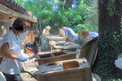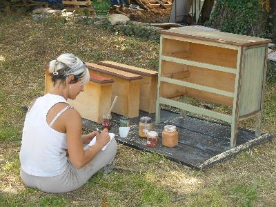 | | |  |  |  | | Petit cours de "chimie" | Stages peintures écologique cette semaine | Expérimpentation des techniques peintures écologiques |  | |  | | Fabrication des lazures | étude des composants des produits Ecolo | découverte des produits écolo pour mobilier