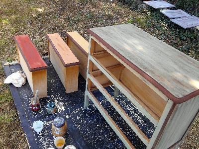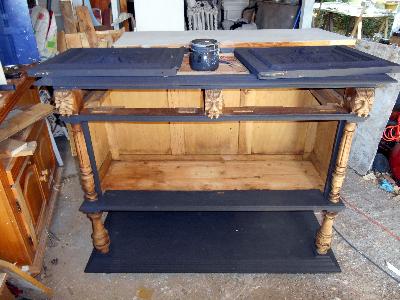 relooking d'un buffet, changement du plateau, peinture caseine et cire maison