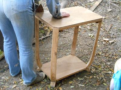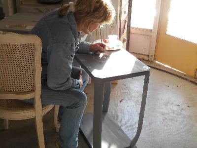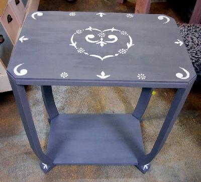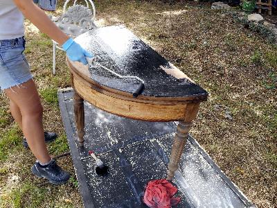 | décapage et métamorphose petite table, aprés réparations | décor peint sur peinture farine