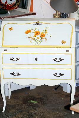 | relooking secretaire, décor coquelicots