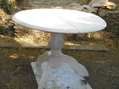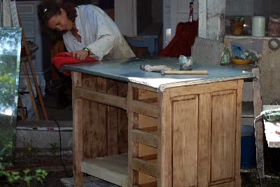 | relooking d'une table, imprégnée de gazoil. | chantier restauration cuisine | relooking magnifique pour ce meuble de style, peinture a la caseine, fabriquée par cinthia