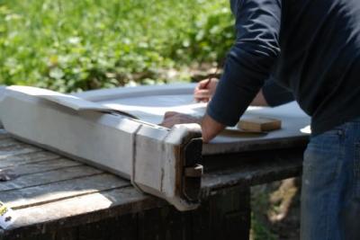 | première opération aprés le dégarnissage: le sanglage .