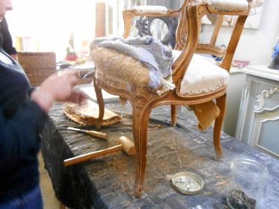 | Travail de relooking fastidieux pour cette chaises de style henri 4