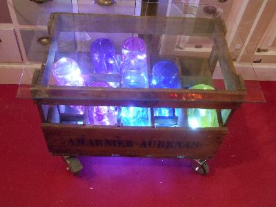 | table viticulteur(caisse en bois, bouteilles de jus d orange cuites,led)