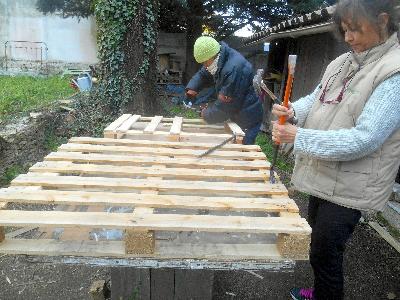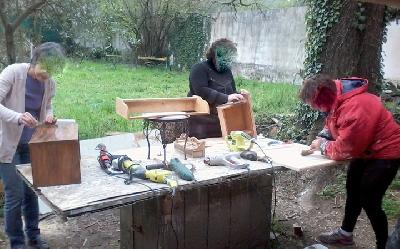vernis maison à l'essence d'écorce d'oranges | .jpg) | .jpg) | .jpg) | | | stages et formations eco recyclage filiere bois | | .jpg) | .jpg) | .jpg) | | formations recyclacge bois et emmenagement d'espaces | constitution et etude des marges sur stock de base | pouf palettes et matériaux recyclés | .jpg) | .jpg) | .jpg) | | menuiserie palettes, des techniques plus pointues que le simple assemblage | création de sièges en bois recyclés | atelier décapage et préparation des supports |  | .jpg) | %20[HDTV%20(720)].JPG) | | customisation d'une vitrine | atelier customisation mobilier | stages créatifs et menuiserie palettes | %20[HDTV%20(720)].JPG) | %20[HDTV%20(720)].JPG) | %20[HDTV%20(720)].JPG) | | des ateliers de rencontre créatifs pour nos futurs créateurs d entreprise | remplacement de vitres par un grillage | le banc de notre équipe de l hopital | %20[HDTV%20(720)].JPG) | %20[HDTV%20(720)].JPG) | %20[HDTV%20(720)].JPG) | | création de la petite porte de coté, pour la vidange | atelier couture d'ameublement pour Christian | création de chaise d'enfants pour Flo | %20[HDTV%20(720)].JPG) | %20[HDTV%20(720)].JPG) | .jpg) | | | atelier au soleil | préparation du dossier du canapé en palettes | %20[HDTV%20(720)].JPG) | %20[HDTV%20(720)].JPG) | %20[HDTV%20(720)].JPG) | | crétion d'obets déricés de la palette pour notre future artisane du nord, ptite florenov(site en cours) | notre futur tapissier, Chrisitian, en formation couture d'ameublement | création de cossinage a plate bande pour relooking de cabapé lit | | | | | %20[HDTV%20(720)].JPG) | %20[HDTV%20(720)].JPG) | %20[HDTV%20(720)].JPG) | | | atelier restauration fauteuil apres refcetion d'assises | l atelier tapisserie mise a blanc | .jpg) | %20[HDTV%20(720)].JPG) | .jpg) | | relooking d 'une salle a amnger , veinage sur merisier | relooking aprés | restauration d'une chaise | | | MAI 2016 | | %20[HDTV%20(720)].jpg) | %20[HDTV%20(720)].jpg) | %20[HDTV%20(720)].jpg) | | formation techniques eco recyclage mobilier | vérification des acquis et panneaux de présentation | recyclage palette et mousses pouf palette | %20[HDTV%20(720)].jpg) | %20[HDTV%20(720)].jpg) | %20[HDTV%20(720)].jpg) | | filtrage de la prépartion du jour, un vernis marin noix de coco | atelier chimie, fabrication de produits écolo, vernis à l' essence d'écorce d'oranges | stages palettes | %20[HDTV%20(720)].jpg) | %20[HDTV%20(720)].jpg) | %20[HDTV%20(720)].jpg) | | | apprentissage par la création de mobilier sur bois de recupération | stages tapisserie, guindage d une chaise | %20[HDTV%20(720)].jpg) | %20[HDTV%20(720)].jpg) | %20[HDTV%20(720)].jpg) | | atelier chimie, prépartion de nos produits de décoration, économique et environnemental | créativité | mise a blanc , avant dernière étape du recouvrement tapisserie | %20[HDTV%20(720)].jpg) | %20[HDTV%20(720)].jpg) | %20[HDTV%20(720)].jpg) | | initation découverte de la meuleuse | fabrication de la porte et mise en application des peinture bois maison | fabrication de notre enduit a l argile | %20[HDTV%20(720)].jpg) | %20[HDTV%20(720)].jpg) | %20[HDTV%20(720)].jpg) | | atelier chimie, fabrication et application d une peinture murale a l argile | initiation et découpe d'une frise a la scie sauteuse, | création palette, notre nordiste prépare ses maquettes, afin d optimiser son voyage, et reproduire les pieces grandeur nature ultèrieurement | %20[HDTV%20(720)].jpg) | | | | les création palettes de " ptite florenov", future artisane de dunkerque | confiturier en bois de palettes et peintures maison | bouton de porte réalisé avec de la maizena, vinaigre, fecule | %20[HDTV%20(720)].jpg) | | | | atelier couture pour flo,création d'un coussin pour canapé en bois de palettes | atelier tapisserie, prépartion du fauteuil | étuide des couts et marges du relooking mobilier | %20[HDTV%20(720)].jpg) | %20[HDTV%20(720)].jpg) | | | atelier thérapeuthiques: emmenagelent d'un espace jardin en bois de palettes | un projet solidaire et créatif | fabrication d'une table de jardin en palettes | .JPG) | | | | | AVRIL 2016 | | %20[DVD%20(NTSC)].JPG) | %20[DVD%20(NTSC)].JPG) | | | cours de chimie 2 caeine, peinture a l'argile,a la chaux | initiation a l apllication d'un stucc fabriqué en atelier | préparation d'une peinture a la craie ou blanc de meudon | %20[DVD%20(NTSC)].JPG) | | | | expérimentaion des recettes, foramtion fabrication produits de décoration maison | ferrage du stuccs | formation eco recyclage et relooking mobilier, un secteur en plein essor | %20[DVD%20(NTSC)].JPG) | %20[DVD%20(NTSC)].JPG) | | | fabrication de la caseine avec le lait: | cuisine des produits | décapage et dépersonalisation d un meuble basque | | %20[DVD%20(NTSC)].JPG) | | | préparation des bois recyclés | notre trouvaille, en bord de chemin, récupéré pour agrémenter le stock d une stagiaire | résultat final, peinture farine , oxyde férique, cire d abeille | %20[DVD%20(NTSC)].JPG) | %20[DVD%20(NTSC)].JPG) |