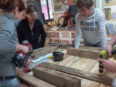 essence d'écorce d'oranges | notre assistante nordiste, vérification des acquis | .JPG) | .JPG) | | | jolie customisation d'un chevet zingué pour Flo, a retrouver dans sa future boutique atelier de Gravelines | cours de peinture et rappel des bases: le cercle chromatique | menuiserie palette: création d'un tabouret | | | | | | | | | customisation d un chevet, peinture farine , oxyde, zingage étude de rentabilité | de belles rencontres entre futurs artisans de régions différentes, dans un prohet commun | atelier thérapeuthique en partenariat avec l hopital d ales: une belle aventure humaine: emmenagement d un espace en bois de palettes.. a suivre | .JPG) | .jpg) | | | peinture farine de la table réalisée en bois de palettes | préparation du bois pour finition cérusée sur mesrisier relooking salle a manger | le laboratoire: tests des peintures et coloris | .JPG) | | | | cours improvisé de peinture sur porcelaine | initiation a la manipulation de la scie a chantourner, un outil a manier avec prudence | initiation a l'utilisation de la perceuse a colonne | .JPG) | .JPG) | | | opération délicate, zingage d'un petit meuble | l'atelier modelage: fabrication de boutons de portes en porcelaine froide | atelier chimie avec la préparation de la traditionelle peinture de base, la peinture farine | .JPG) | | | | prépartion objets divers en ois recyclés | atelier initiation electro portatif menuiserie palettes, création d'un canapé | jardinière en bois de palettes | .jpg) | | | | création de toilettes chimiques en bois de palettes: royal! | initiation au sanglage d une chaise pour customisation | peinture de toilette seche, une inovation dans nos ateliers palettes, de Cecile | .JPG) | | | | atelier peinture naturelle pour le banc d 'exterirur de notre groupe du jeudi: banc réalisé en commun | prépartion d'un cimptoir zingué en palettes, pour R | le tabouret palettes, décor cupo cakes | .JPG) | | | | préparation du décor du canapé | canapé enfants en bois recyclé | détail motif et peinture argile rose | | | JUIN 2016 | | %20[HDTV%20(720)].JPG) | %20[HDTV%20(720)].JPG) | %20[HDTV%20(720)].JPG) | | création et design en bois de recupération | recyclage arytisanal | inovation pour cecile,toilette seche en palette, royales ! | %20[HDTV%20(720)].JPG) | %20[HDTV%20(720)].JPG) | %20[HDTV%20(720)].JPG) | | finition de la table de salon zn palette | une création en commun de l 'atelier thérapeuthique, en bois de palette, le banc | trés joli résultat pour le groupe | %20[HDTV%20(720)].JPG) | %20[HDTV%20(720)].JPG) | %20[HDTV%20(720)].JPG) | | création de chaises d'exterieur en palette | préparation de jardinières en palette, atelier menuiserie | reflexion , réalisation en commun | | | | | %20[HDTV%20(720)].JPG) | %20[HDTV%20(720)].JPG) | %20[HDTV%20(720)].JPG) | | le nord aide le centre, c'est cela aussi nos ateliers, nos formations, des échanges entre futur créateurs d'entreprise | atelier aménagement d'espaces en bois de palettes | stages tapisserie d ameublement | %20[HDTV%20(720)].JPG) | %20[HDTV%20(720)].JPG) | %20[HDTV%20(720)].JPG) | | atelier tapisserie refection de fauteuils | étude du projet et definition des objectifs en commun | création d'une table en bois de palettes | %20[HDTV%20(720)].JPG) | %20[HDTV%20(720)].JPG) | %20[HDTV%20(720)].JPG) | | préparation d'un banc en palettes | atelier recuvrement avec l intruse de l atelier | formations tapisserie | .jpg) | .jpg) | .jpg) | | canapé en fats en bois de palettes | customisation d'une huche a pain en petit confiturier | nuancier sur poste pour expo, finicition