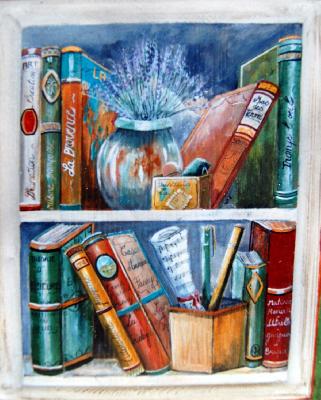 trompe l'oeil livres | meuble peint trompe l'oeil "soleiade" | trompe l'oeil livres |
